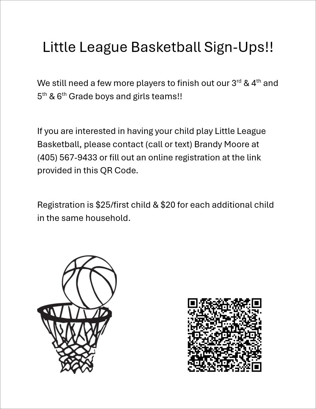 Please contact (call or text) Brandy Moore at 405-567-9433 with questions.